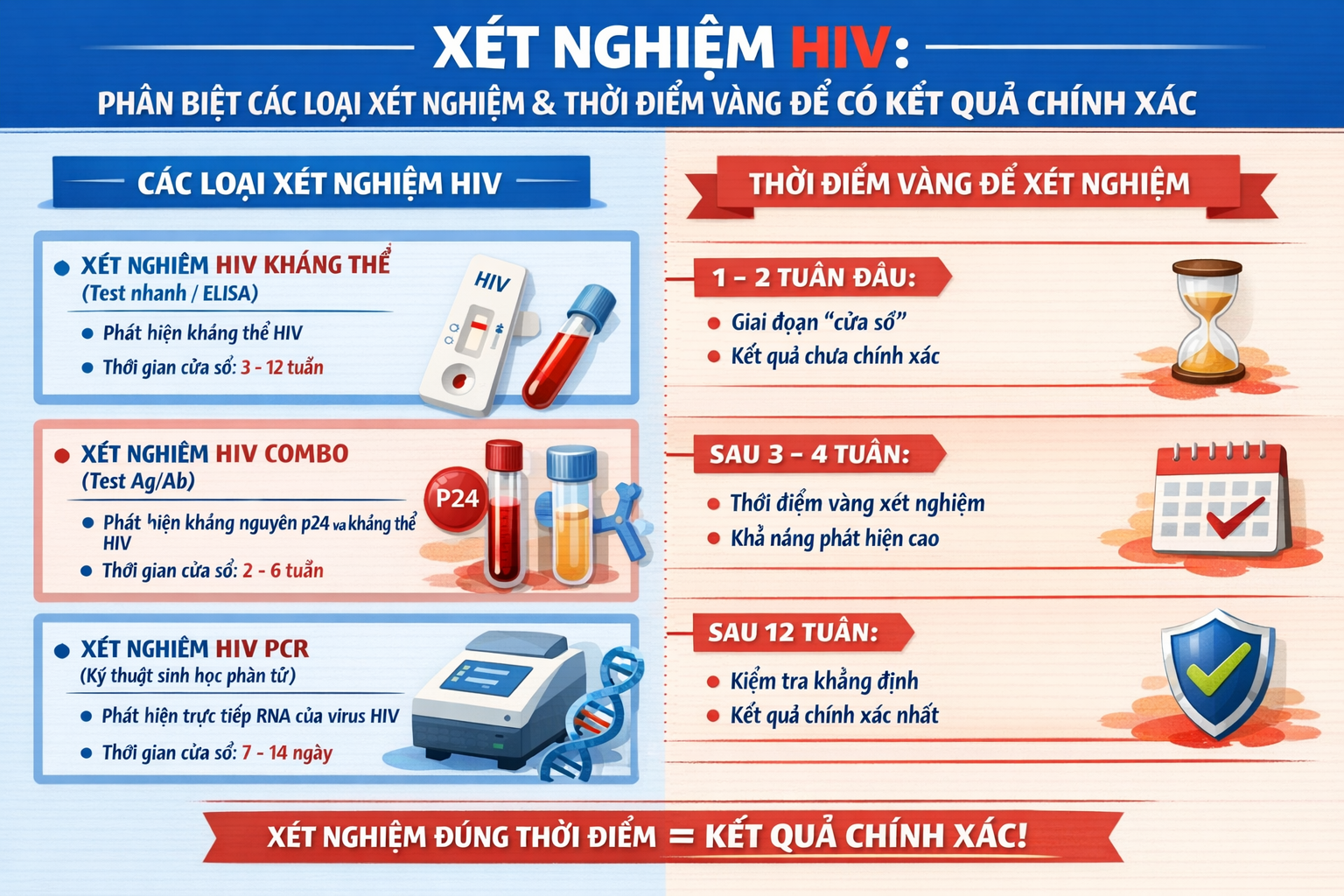 Xét nghiệm HIV: Phân biệt các loại xét nghiệm & Thời điểm vàng để có kết quả chính xác